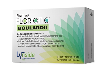 Dodatak prehrani u kapsulama, sadrži sojeve mliječno kiselih bakterija laktobacila i bifidobakterija uz jedinstvenu kombinaciju S. Boulardii za sinergijski učinak u obnovi crijevne mikrobiote.